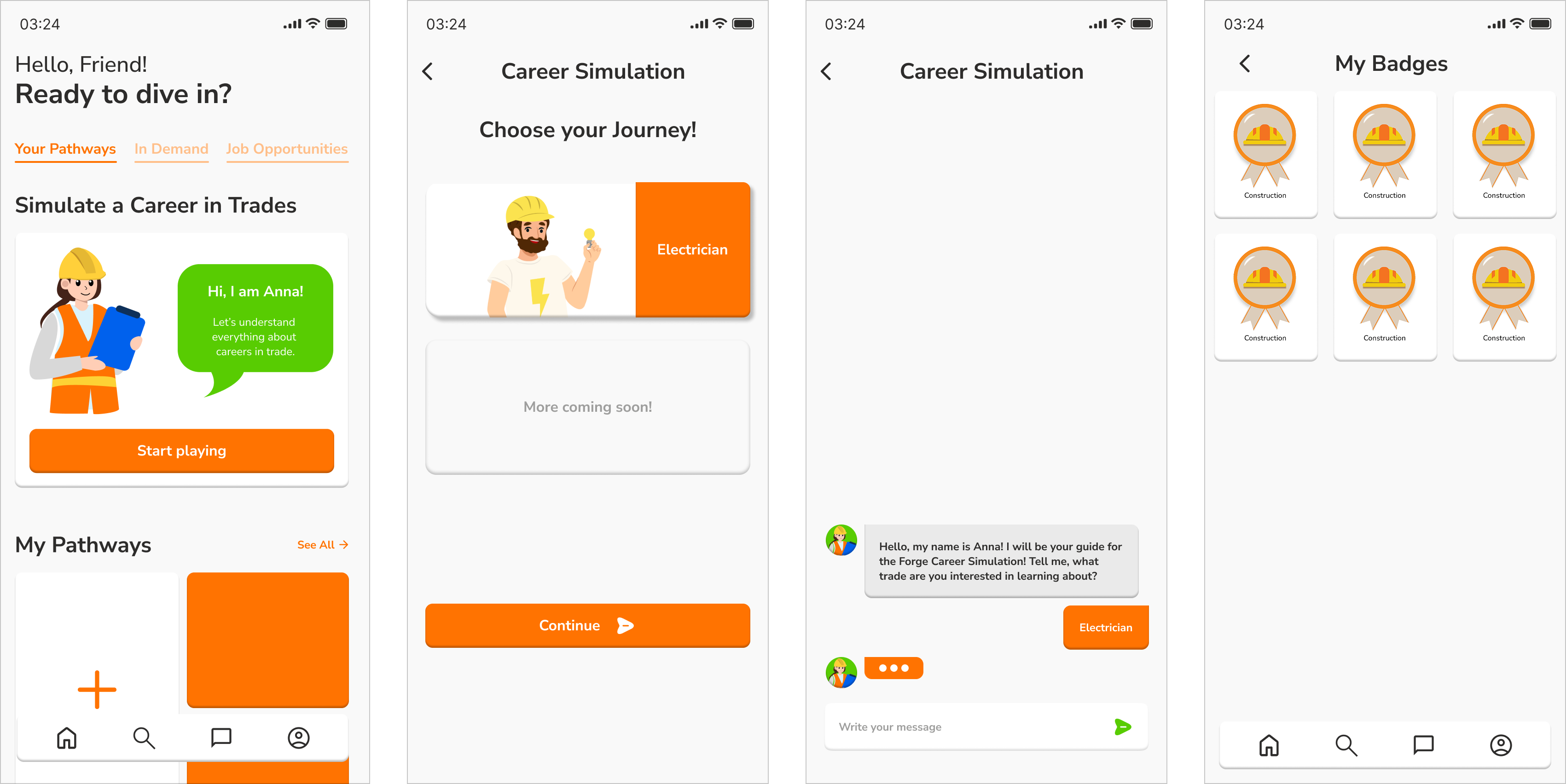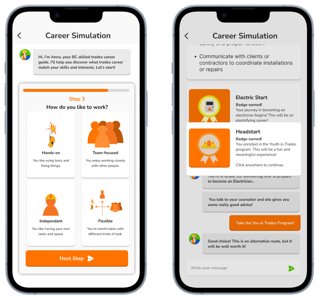 In this iteration, users can simulate a trades career from start to finish by chatting with our AI assistant, earning badges on the way as proof and reward for their hard work.