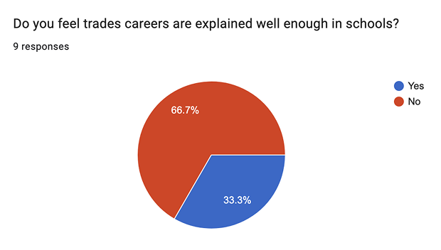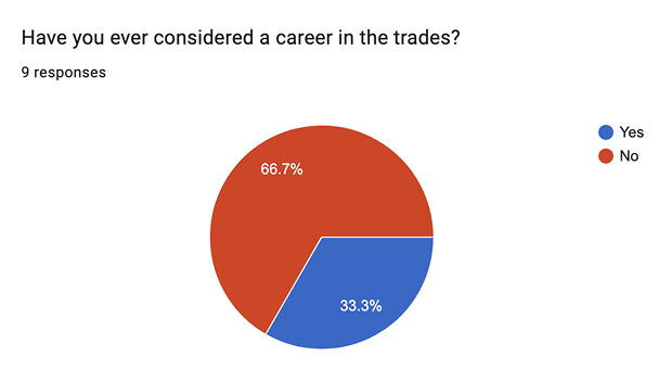 Our team also sent out a survey to local high school students to understand their concerns and motivations regarding skilled trades. We had 9 respondents in total.